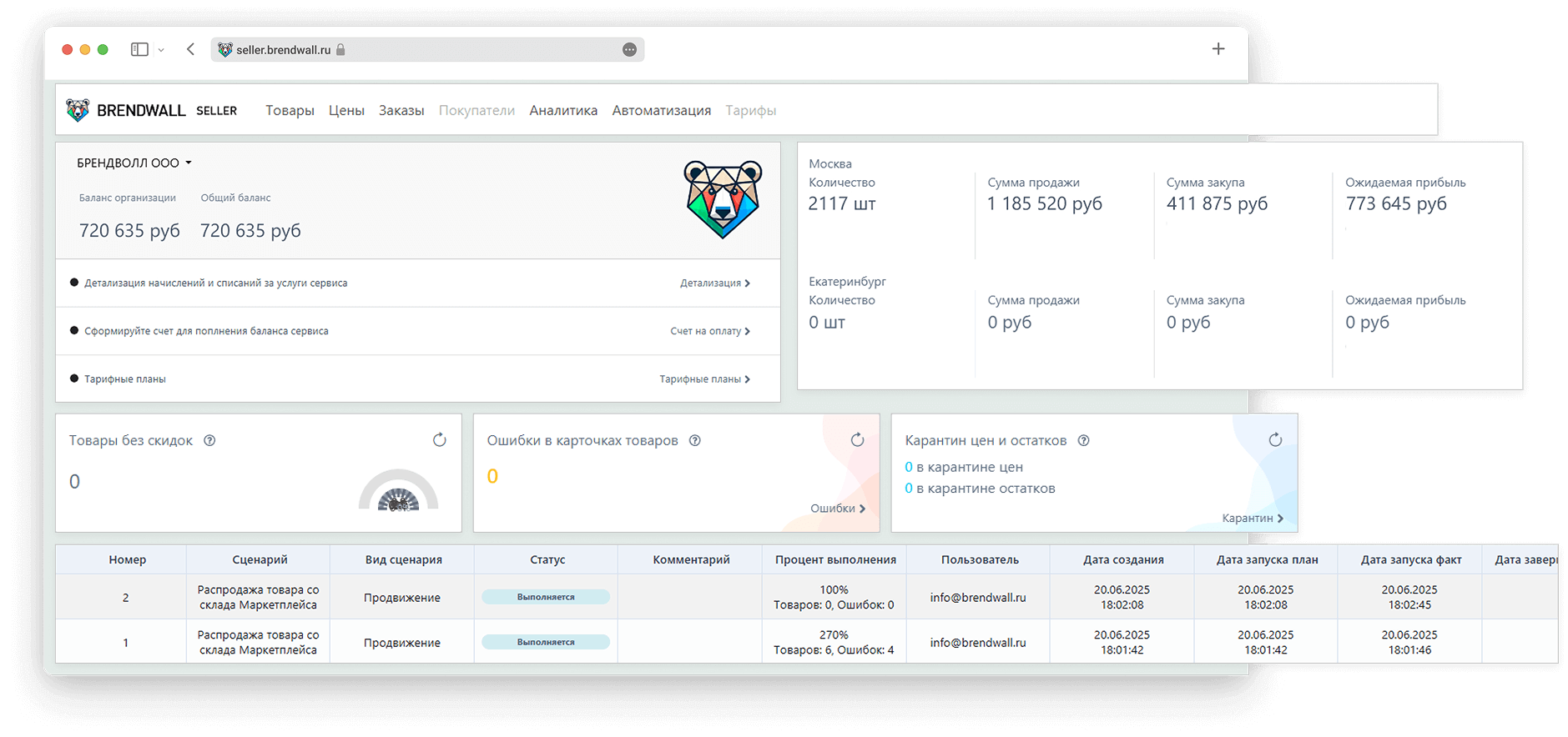 Остатки и цены обновляются в реальном времени, управление карточками и аналитика доступны в один клик — на всех маркетплейсах.